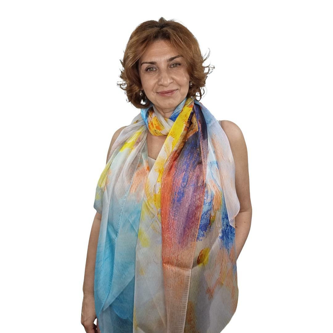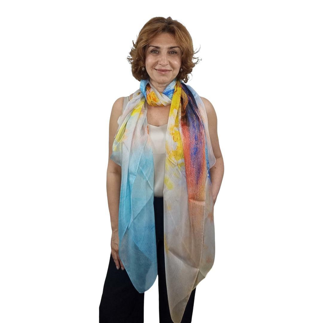 Палантин 100% шелк (шифон, сорт Малберри, 6 момми), машинный подгиб края, размер до 106х195 см (1-3 см допуск по ГОСТу на подгиб).