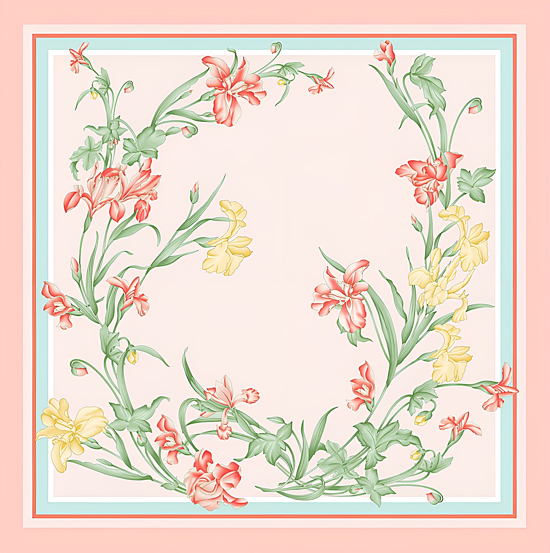Платок 100% шелк (креп-сатин/атлас, сорт Малберри, 12 момми), машинный подгиб края, размер до 52х52 см (1-3 см допуск по ГОСТу на подгиб).