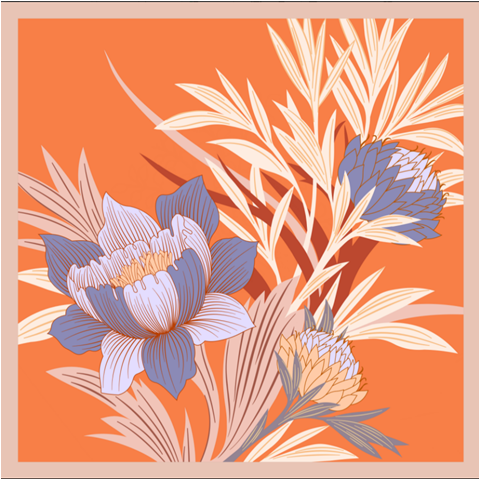 Платок 100% шелк (креп-сатин/атлас, сорт Малберри, 12 момми), машинный подгиб края, размер до 62х62 см (1-3 см допуск по ГОСТу на подгиб).