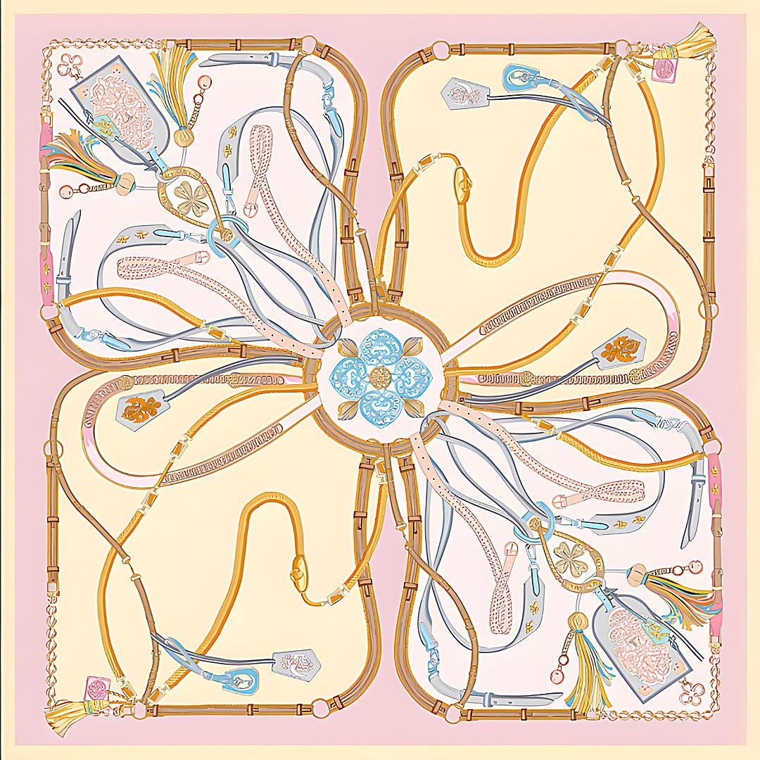 Платок 100% шелк (креп-сатин / атлас, сорт Малберри, 14 момми), ручной подгиб края, размер до 87×87 см (1−3 см допуск по ГОСТу на подгиб).