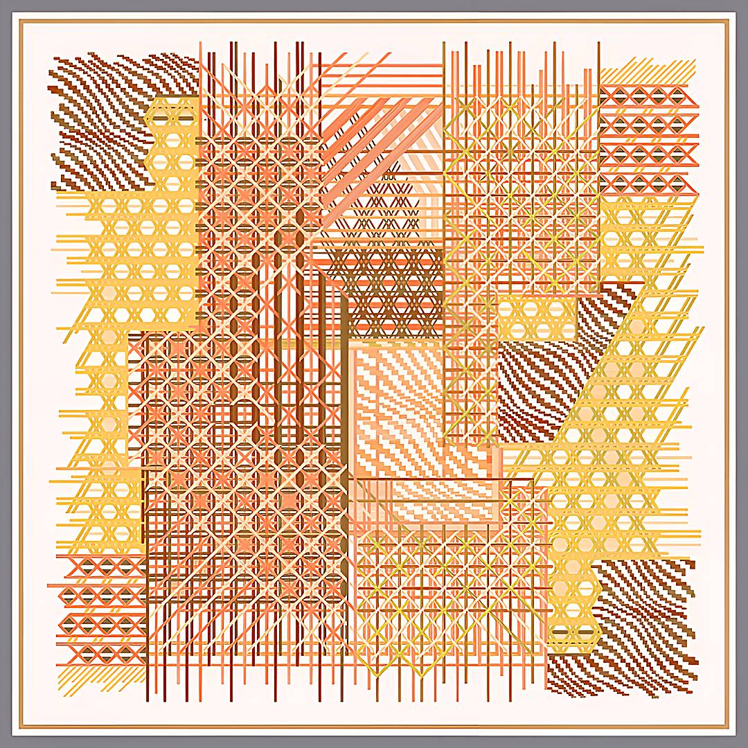 Двусторонний платок 100% шелк (саржевое плетение шелка / твил, сорт Малберри, 18 момми) двойная печать рисунка, ручной подгиб края, размер до 106х106 см (2-5 см допуск по ГОСТу на подгиб).