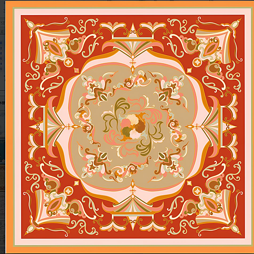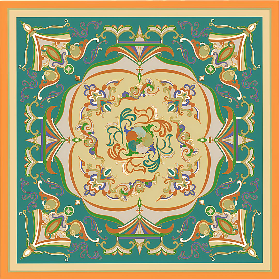 Платок 100% шелк (саржевое плетение шелка / твил, сорт Малберри, 16 момми) двусторонняя печать рисунка, ручной подгиб края, размер до 62х62 см (1-3 см допуск по ГОСТу на подгиб).