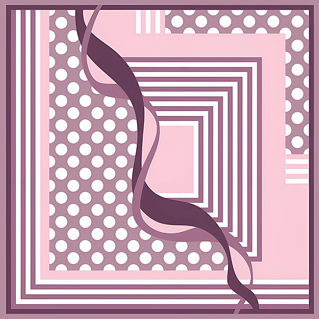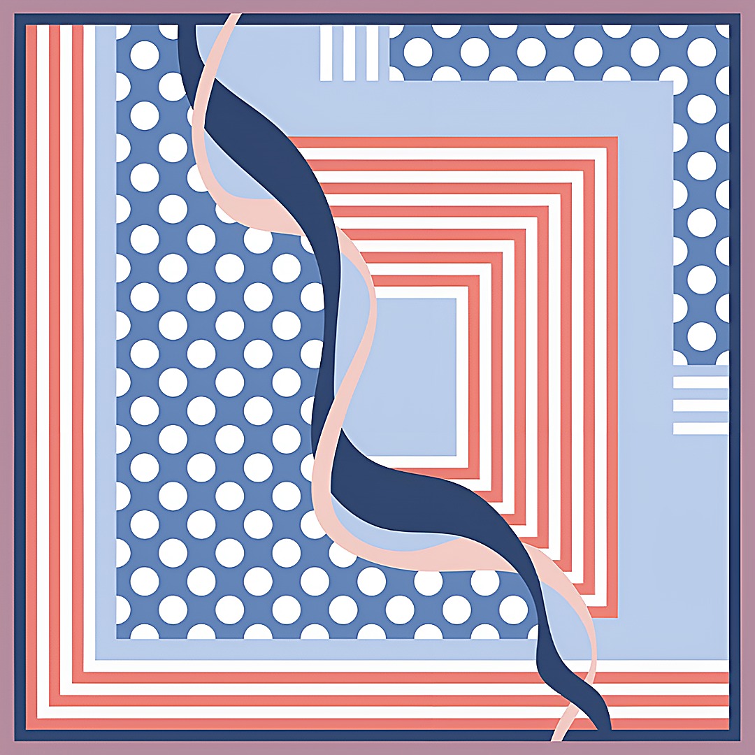 Двусторонний платок 100% шелк (саржевое плетение шелка / твил, сорт Малберри, 16 момми) двойная печать рисунка, ручной подгиб края, размер до 87х87 см (1-3 см допуск по ГОСТу на подгиб).